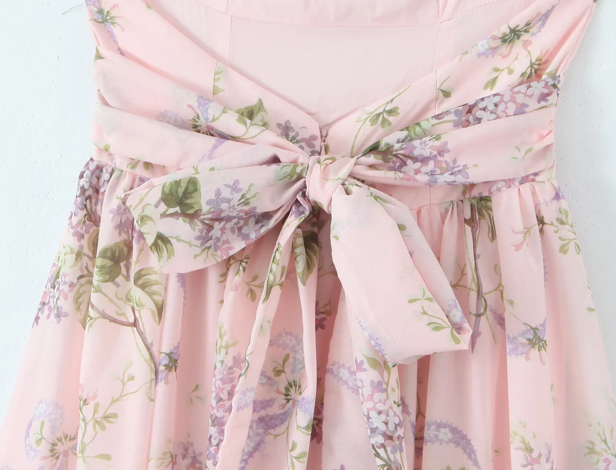Sparkify’s Women’s Pink Floral Dress is the perfect choice for a breezy, stylish summer. Designed with a romantic pink floral print, this midi-length A-line dress effortlessly combines elegance with comfort. The sleeveless and backless design brings a touch of allure, while the low waist cut adds a flattering silhouette.