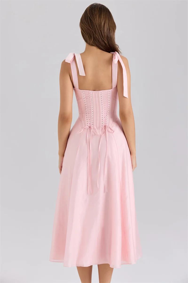 Sparkify’s Women’s Pink Midi Dress is the perfect blend of elegance and allure, designed to make you stand out at any event. Crafted from a soft, high-quality polyester blend, this dress features a flattering lace-up corset front that enhances your shape while adding a touch of sophistication. The midi length offers a chic, timeless silhouette, while the delicate spaghetti straps and sleeveless cut keep the look fresh and summery.